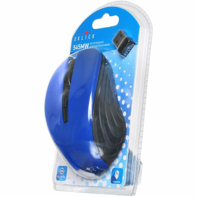 Мышь Oklick 545MW, оптическая, беспроводная, USB, черный и синий [368630]