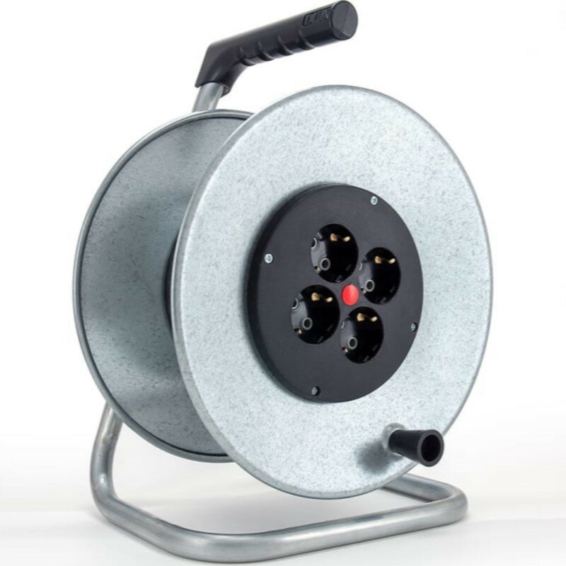 Катушка LUX K4-Е с металлическим ободом 4 встр. розетки с з/к без провода