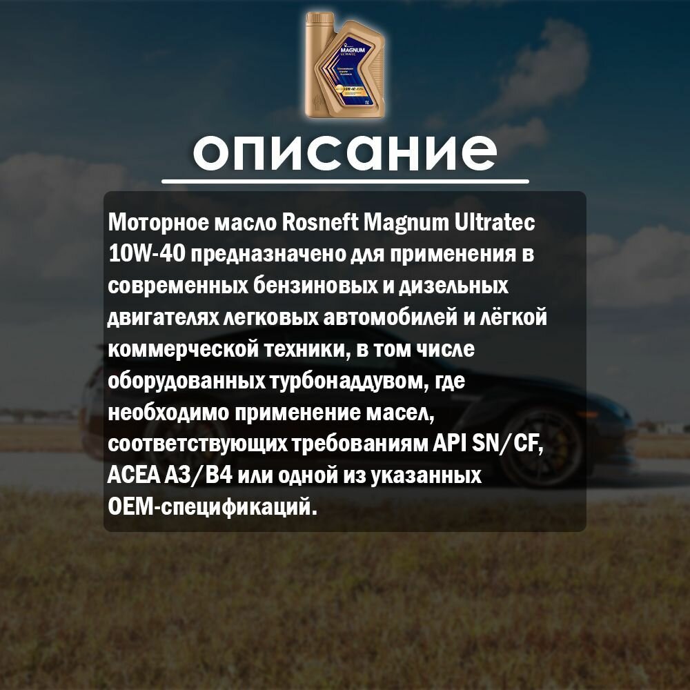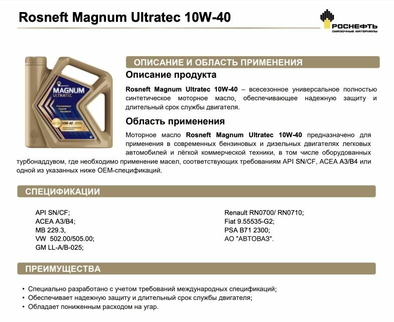 СохранитьМасло моторное Rosneft Magnum Ultratec 10W-40, 1 л синт . интересное: