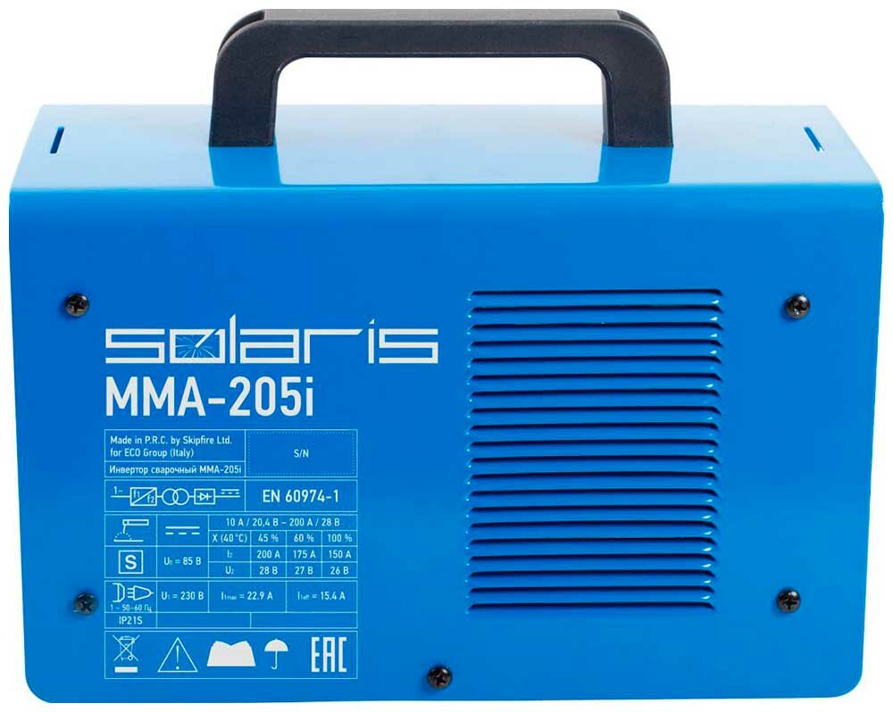 Купить Solaris Инвертор сварочный MMA-205i (230В, 10-200 А, 85В, электроды диам. 1.6-4.0 мм, вес 5.1 кг)