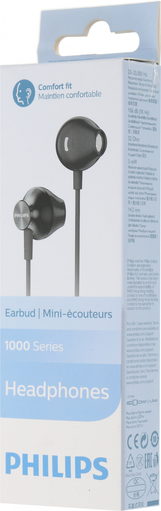 Наушники Philips TAUE100BK/00 вставные, 32Ом, 106дБ, кабель 1м, Black