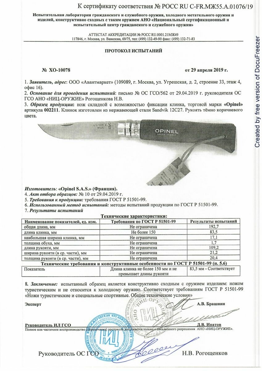 | Отзыв: | Отличный результат. Чётко работает замок фиксация. Лезвие в сложенном состоянии находится по центру паза в ручки. Деревянная удобная ручка. Для некоторых задач маловат. Оптимальный размер на мой взгляд - Opinel N10. Но ножом я доволен. |
