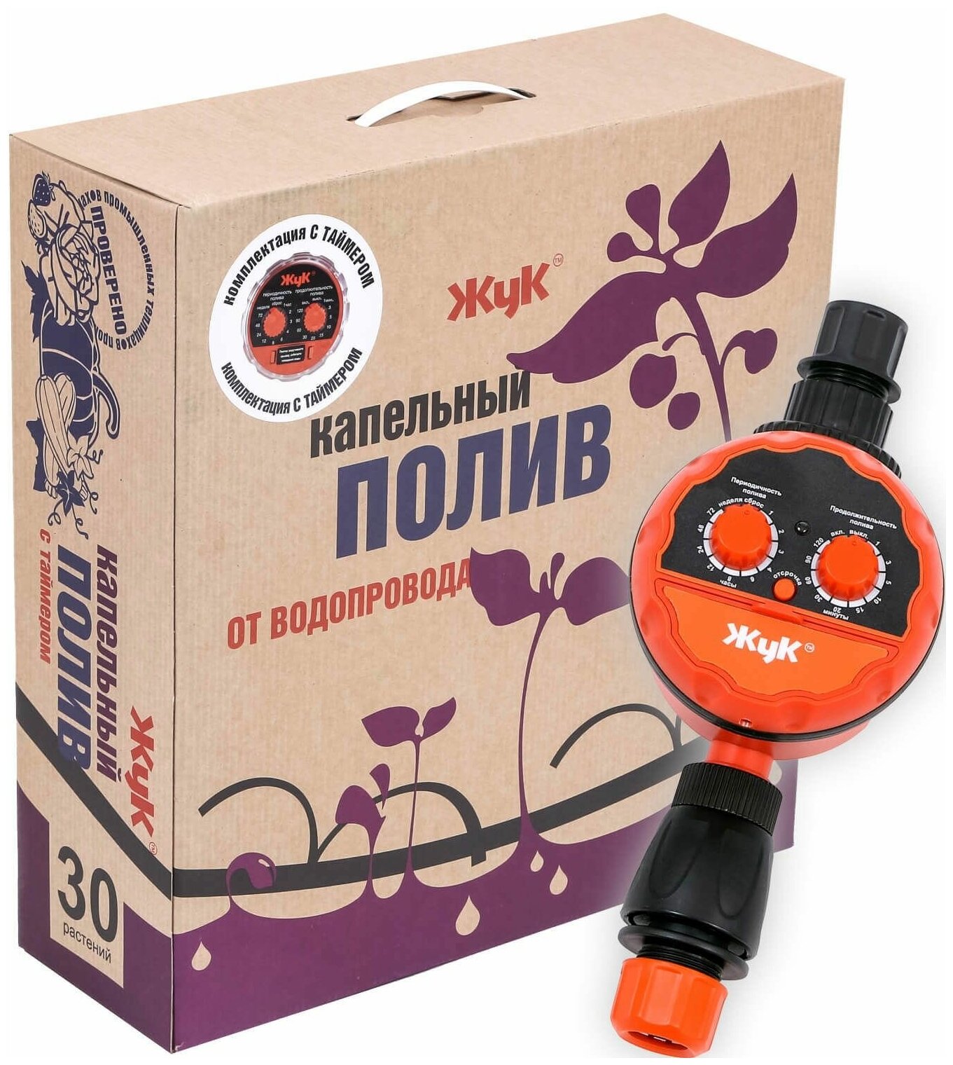 Набор капельного полива от водопровода, на 30 растений, с таймером, «Жук»