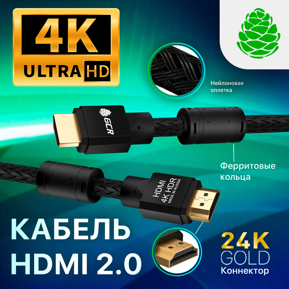 Кабель 1.5м GCR HDMI 2.0 серия PROF нейлон Ultra HD 4K 3D 18 Гбит/с для PS4 Xbox One черный 24К GOLD