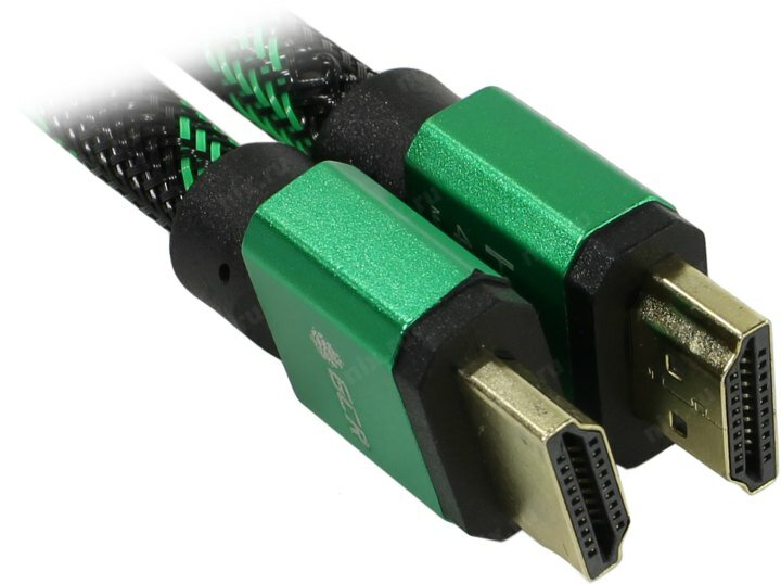 Купить HDMI Видео-кабель 1м GCR Ultra HD 4K 3D 18 Гбит/с частично нейлон для монитора черно-зеленый 24К GOLD