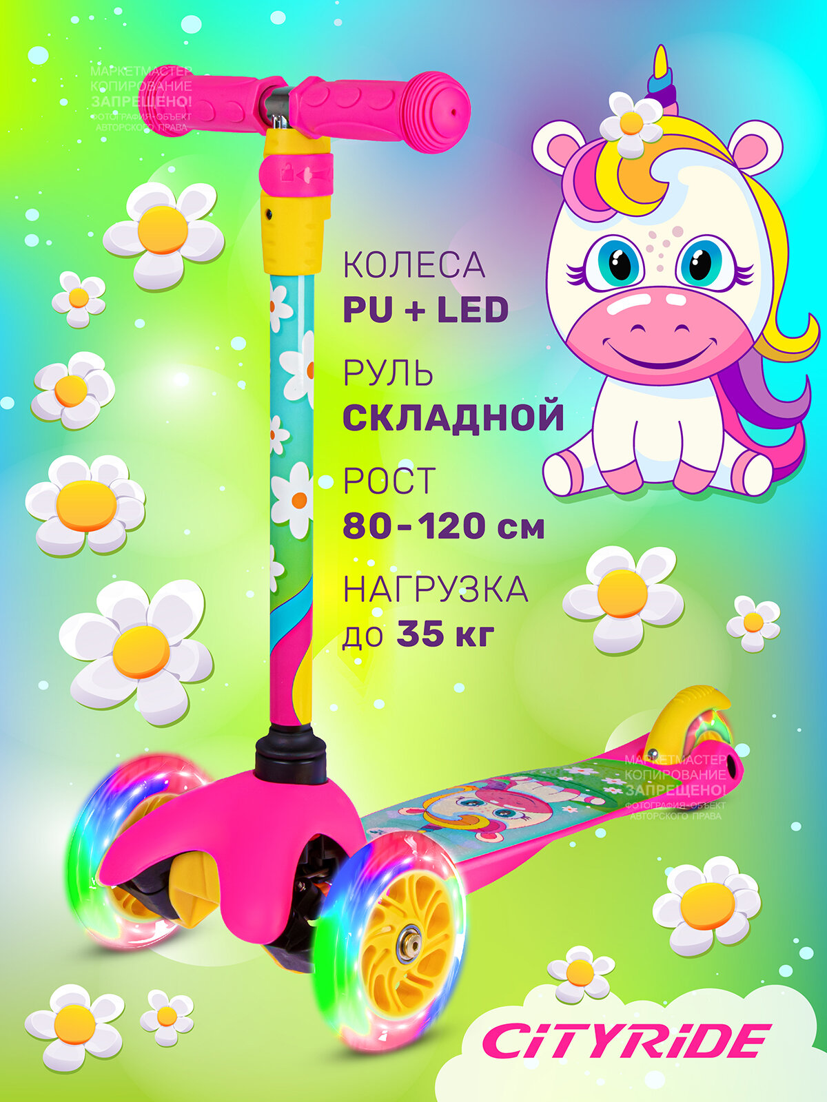 Самокат детский трехколесный ТМ CITYRIDE, колеса со светодиодами PU120/76, руль телескопический, CR-S4-05YWC