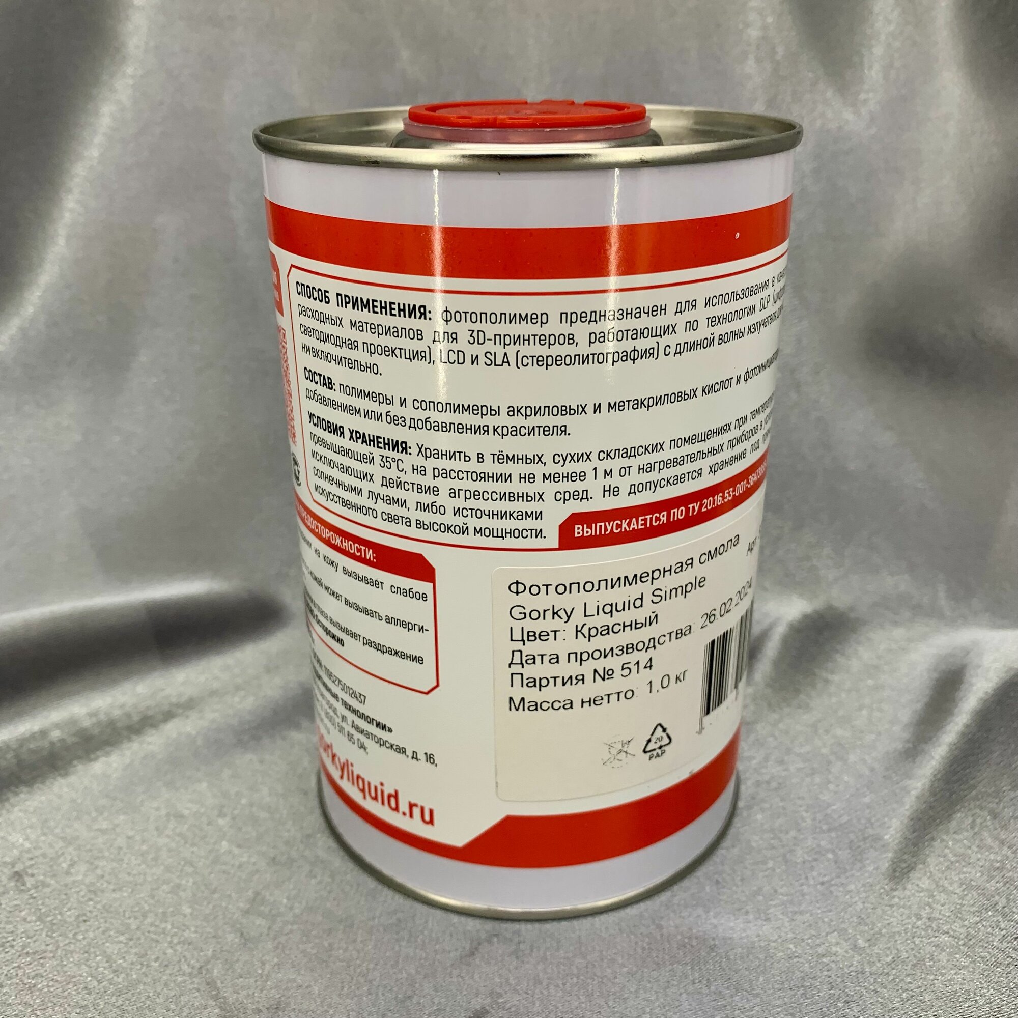 Купить "Simple" красная 1 кг фотополимерная смола Gorky Liquid