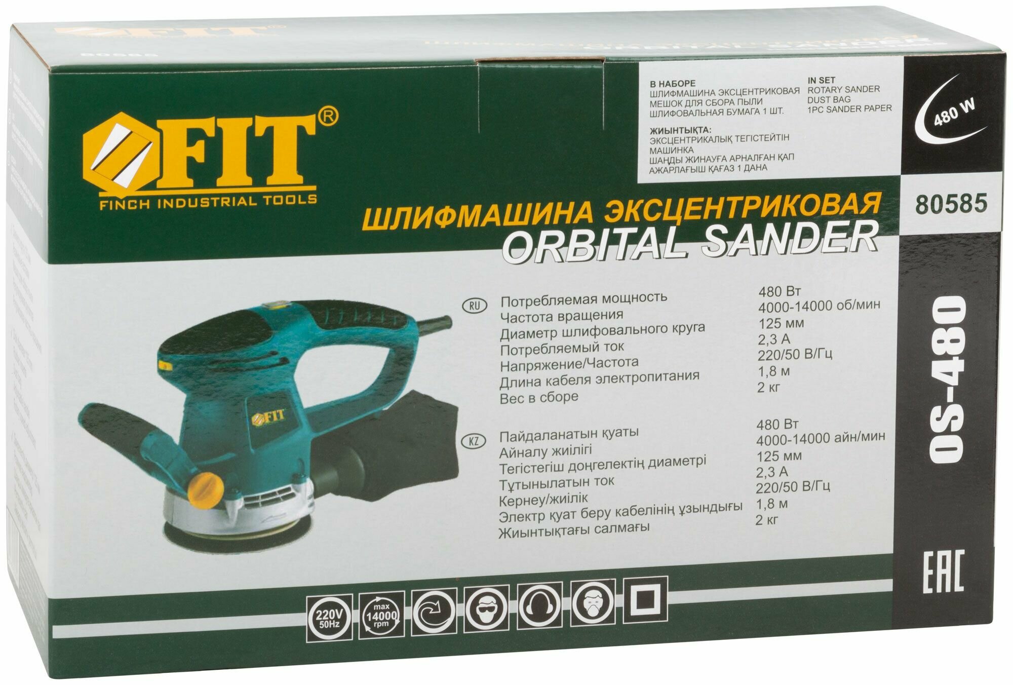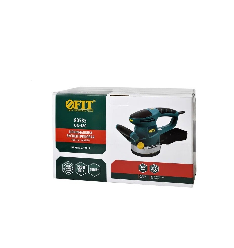 Шлифмашина эксцентриковая 480 Вт, 4000-14000 об/мин, 125 мм, липучка, коробка FIT 80585