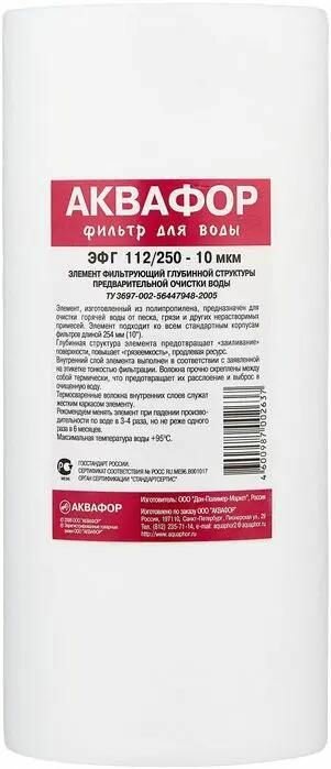 Картридж фильтра Аквафор для холодной воды ЭФГ 112/250 полипропиленовый от механических примесей 20 мкм для Гросс 10' 10BB 104084 АКВАФОР