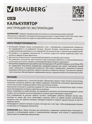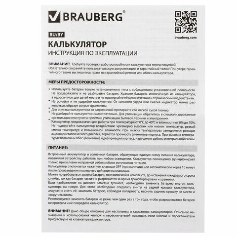 Калькулятор карманный BRAUBERG PK-608-BU (107x64 мм), 8 разрядов, двойное питание, синий, 250519 В комплекте: 1шт.