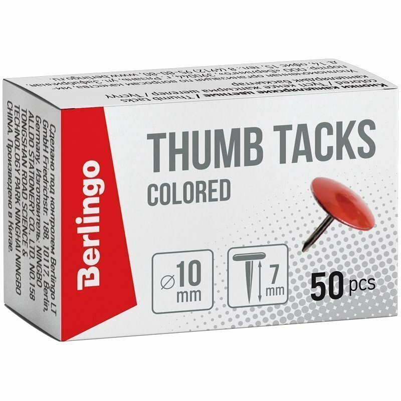 СохранитьКнопки канцелярские Berlingo гвоздики, цветные, 10 мм, 50 штук (RN5030f) интересное: