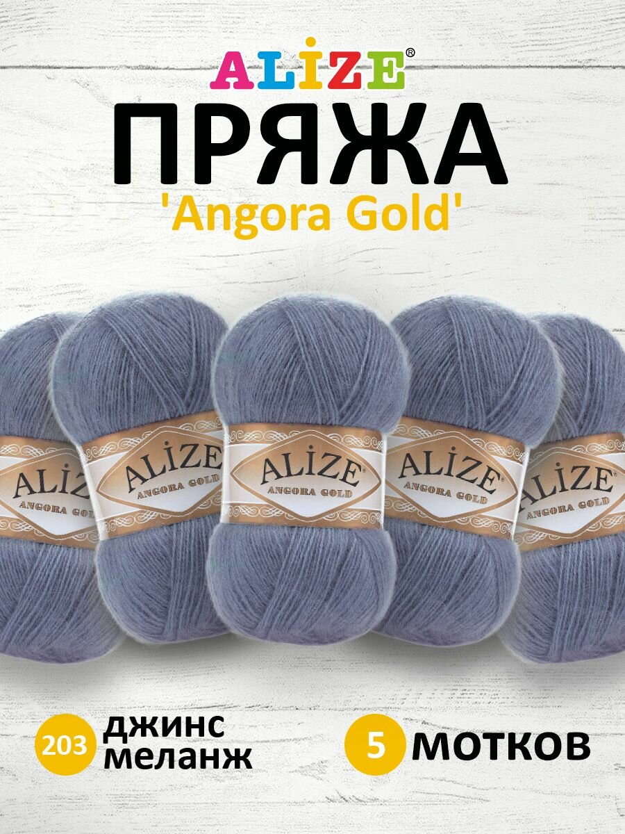 Купить Пряжа для вязания ALIZE 'Angora Gold', 100г, 550м (80% акрил, 20% шерсть), ТУ (203 джинс меланж), 5 мотков