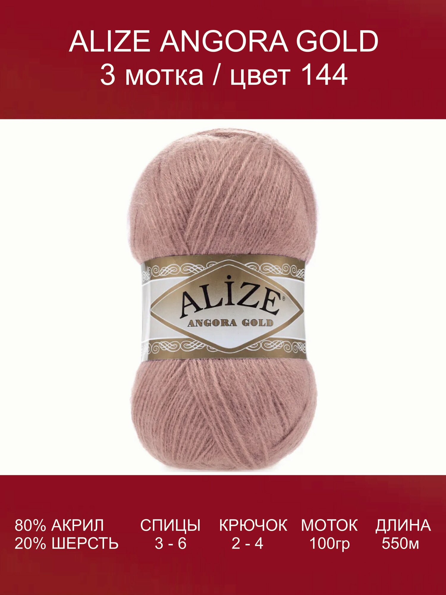 Купить Пряжа Alize Angora gold (Ангора голд) цвет: 144 темная пудра, 100гр. 550м. (20% шерсть, 80% акрил), 3 шт.