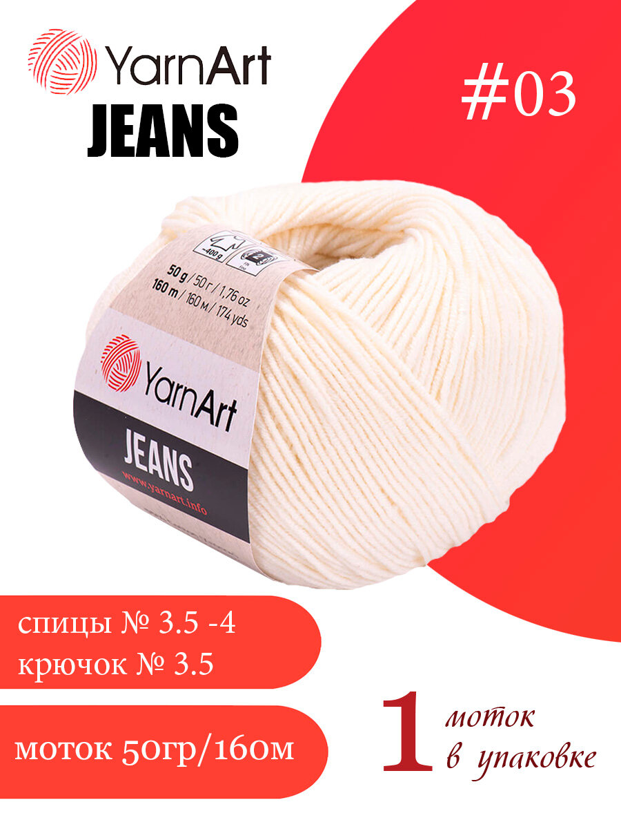 Купить Пряжа YarnArt "Jeans", 55% хлопок, 45% акрил, 160 м/50 гр, (03 молочный)