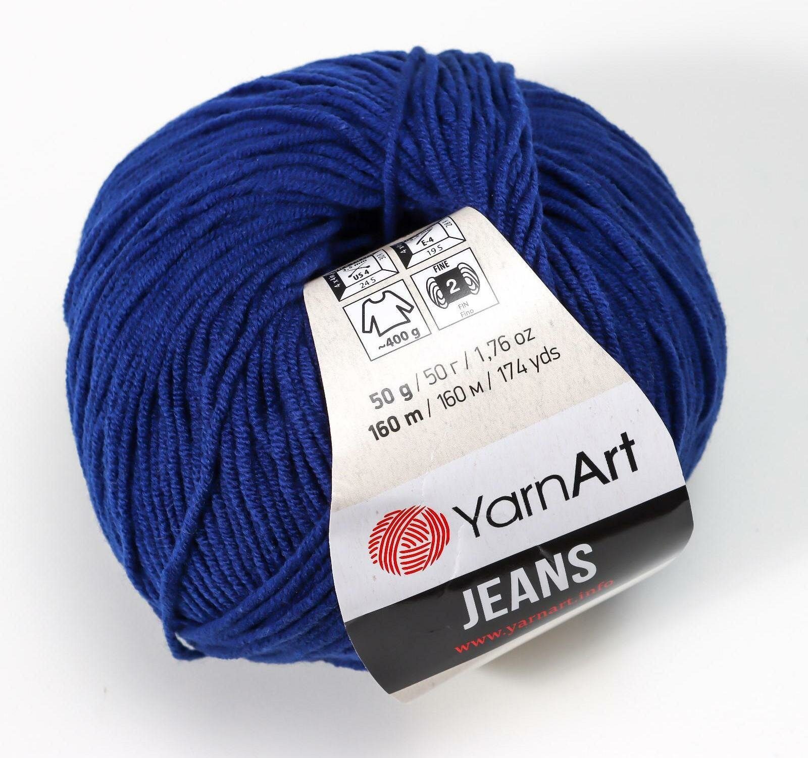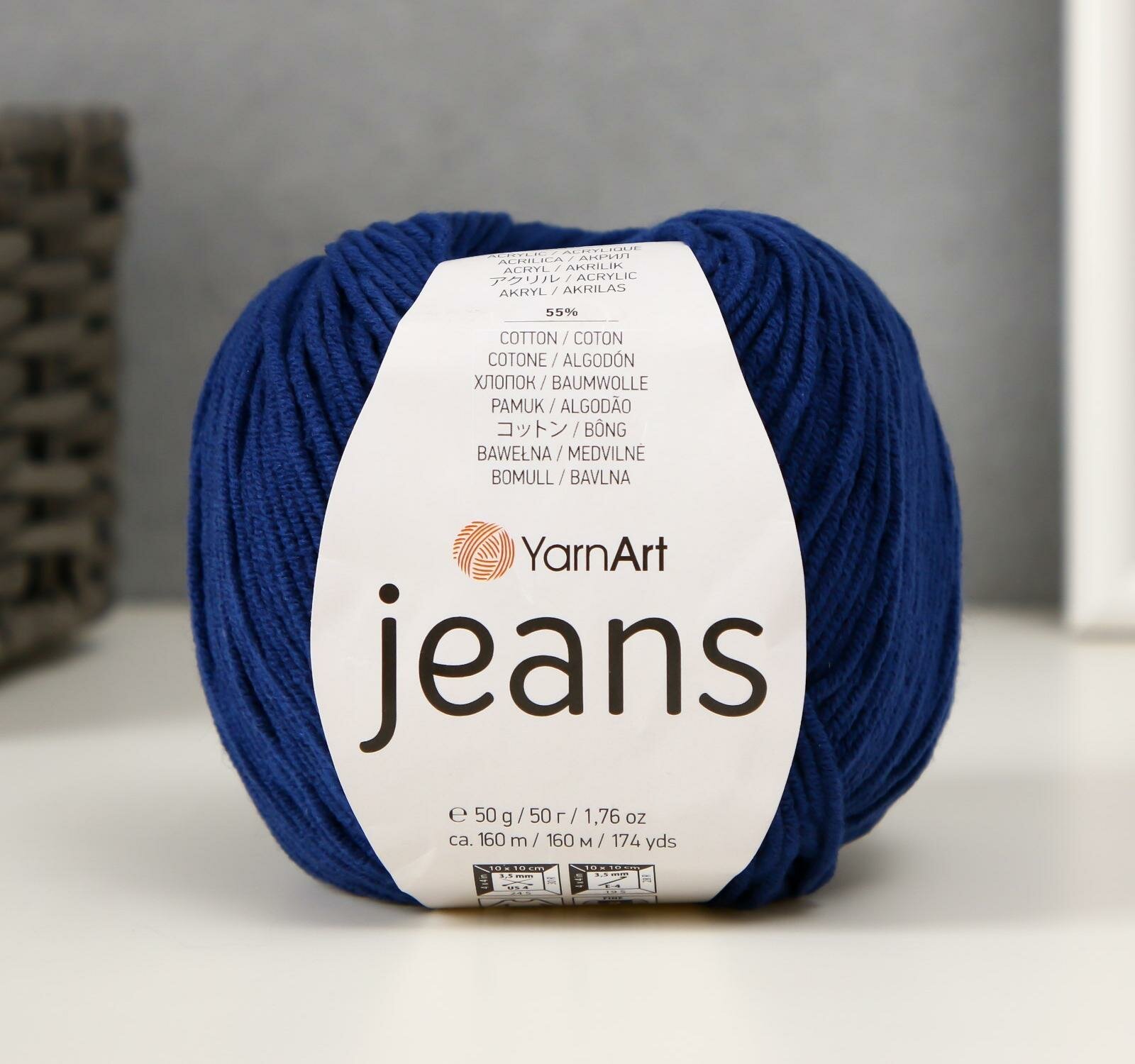 Пряжа YarnArt Jeans, цвет синий 17, 1 моток, 50г/160м, состав 45% акрил, 55% хлопок, ярнарт джинс