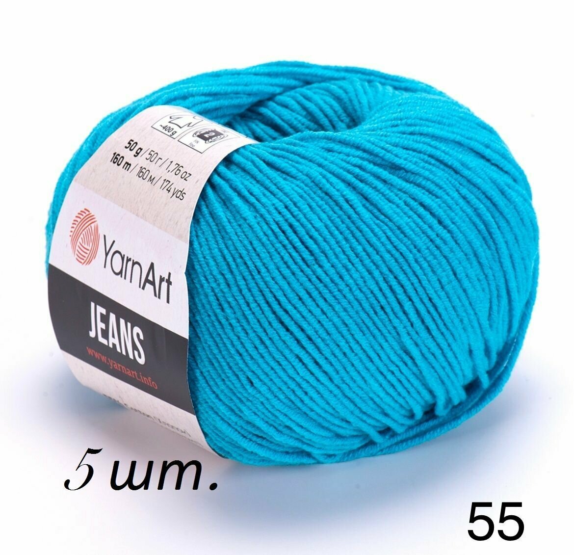 Купить Пряжа YarnArt Jeans - 5 шт.,Темно-бирюзовый (55), 160м/50г, хлопок 55%, акрил 45% /ЯрнАрт Джинс/