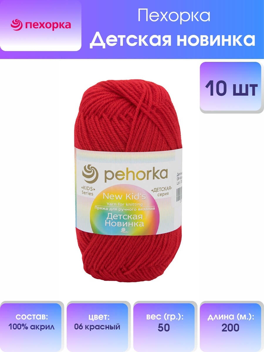 Пряжа 10 шт Пехорка Детская новинка Красный (06)