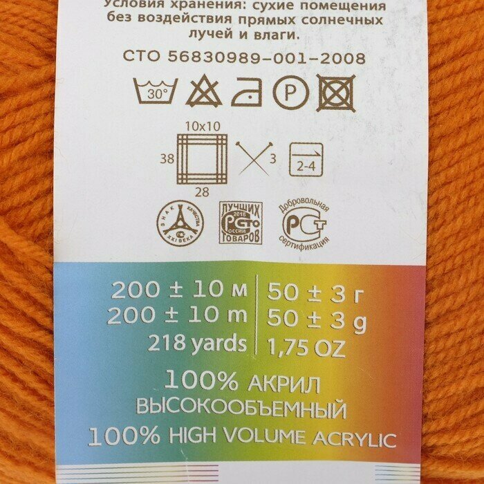 Пряжа для вязания Пехорка 'Детская новинка' 50г, 200м (100% акрил) (284 оранжевый), 10 мотков