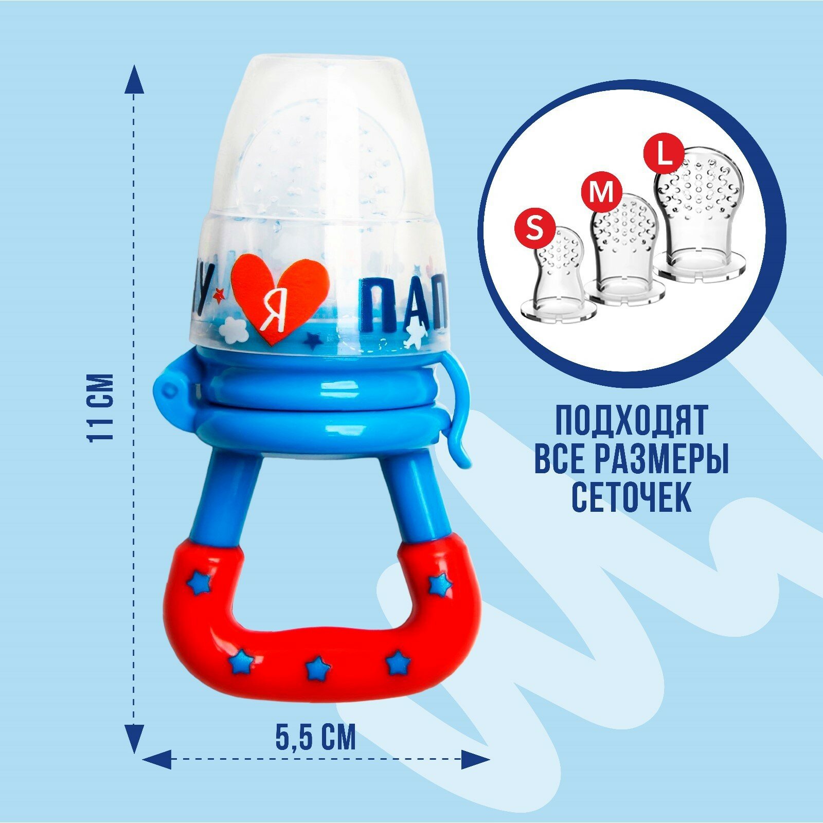Ниблер «Люблю маму и папу», с силиконовой сеточкой, цвет бирюзовый/белый. В наборе 1шт.