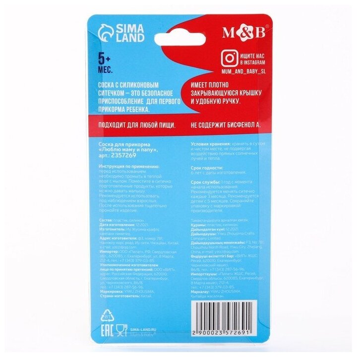 Ниблер «Люблю маму и папу» с силиконовой сеточкой цвет бирюзовый/белый интересное: