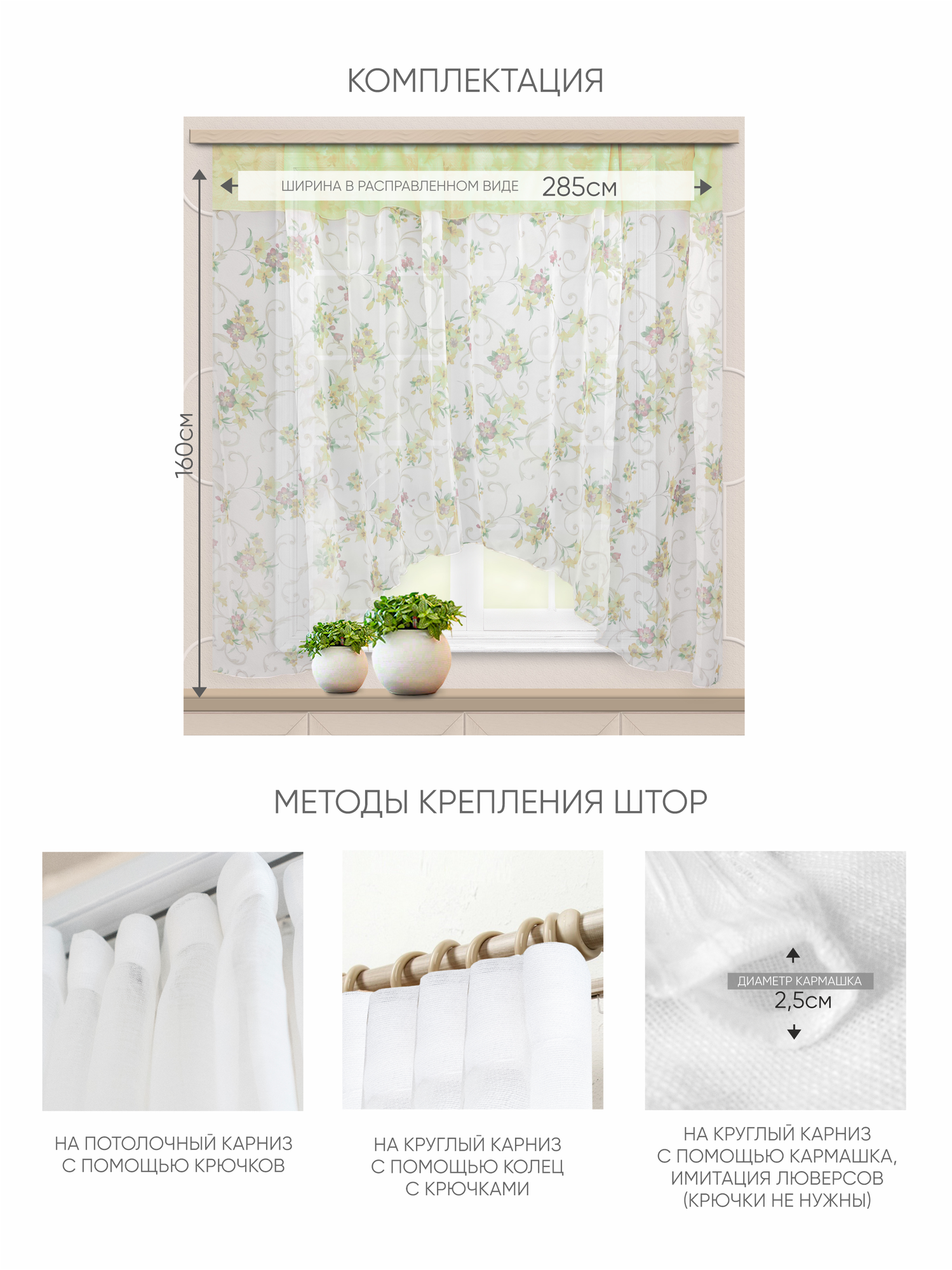 Тюль для кухни Witerra штора с рисунком 285*160 см