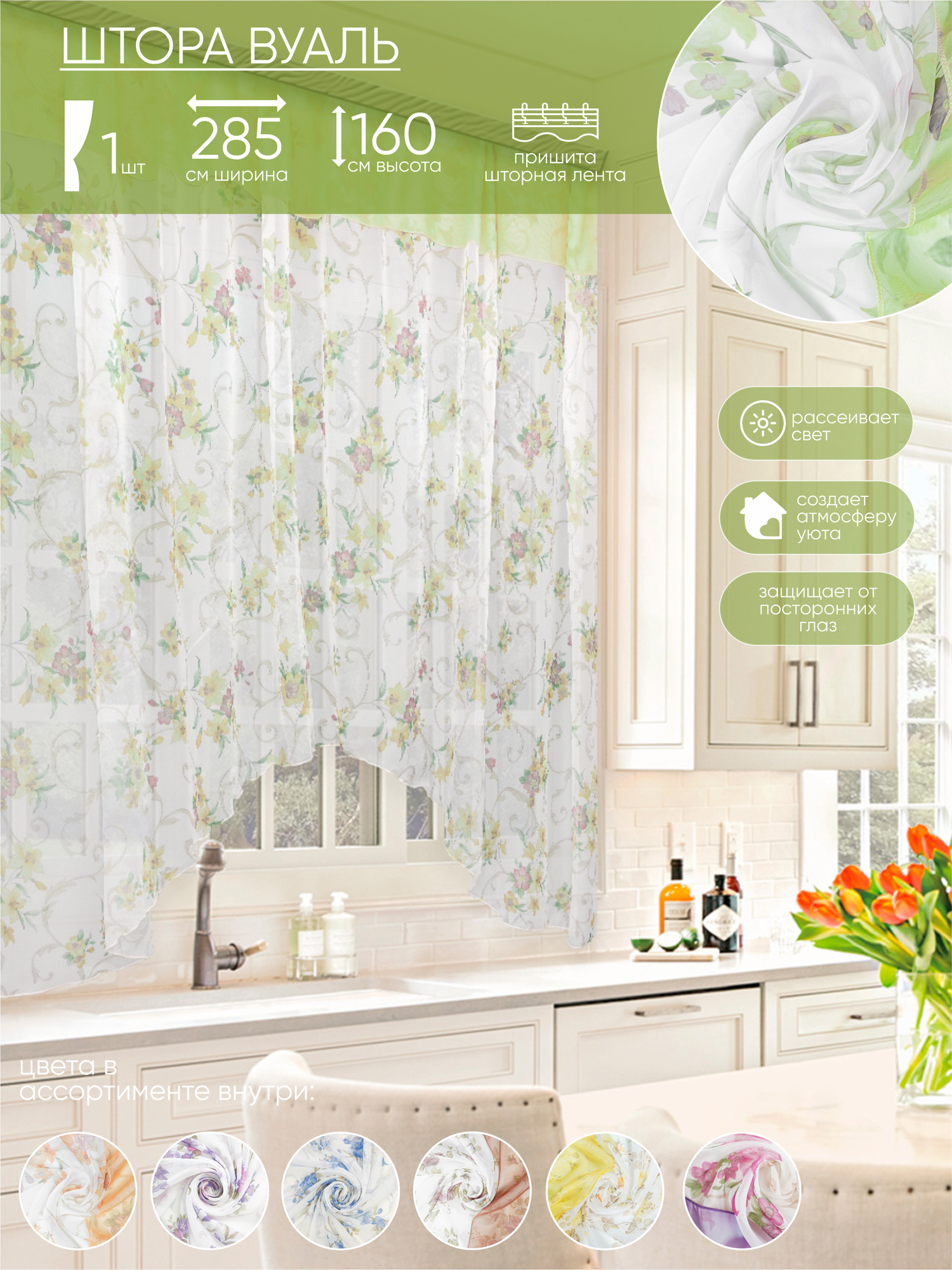 Комплект штор Witerra для кухни Кантри 285*160 зеленый - 1шт