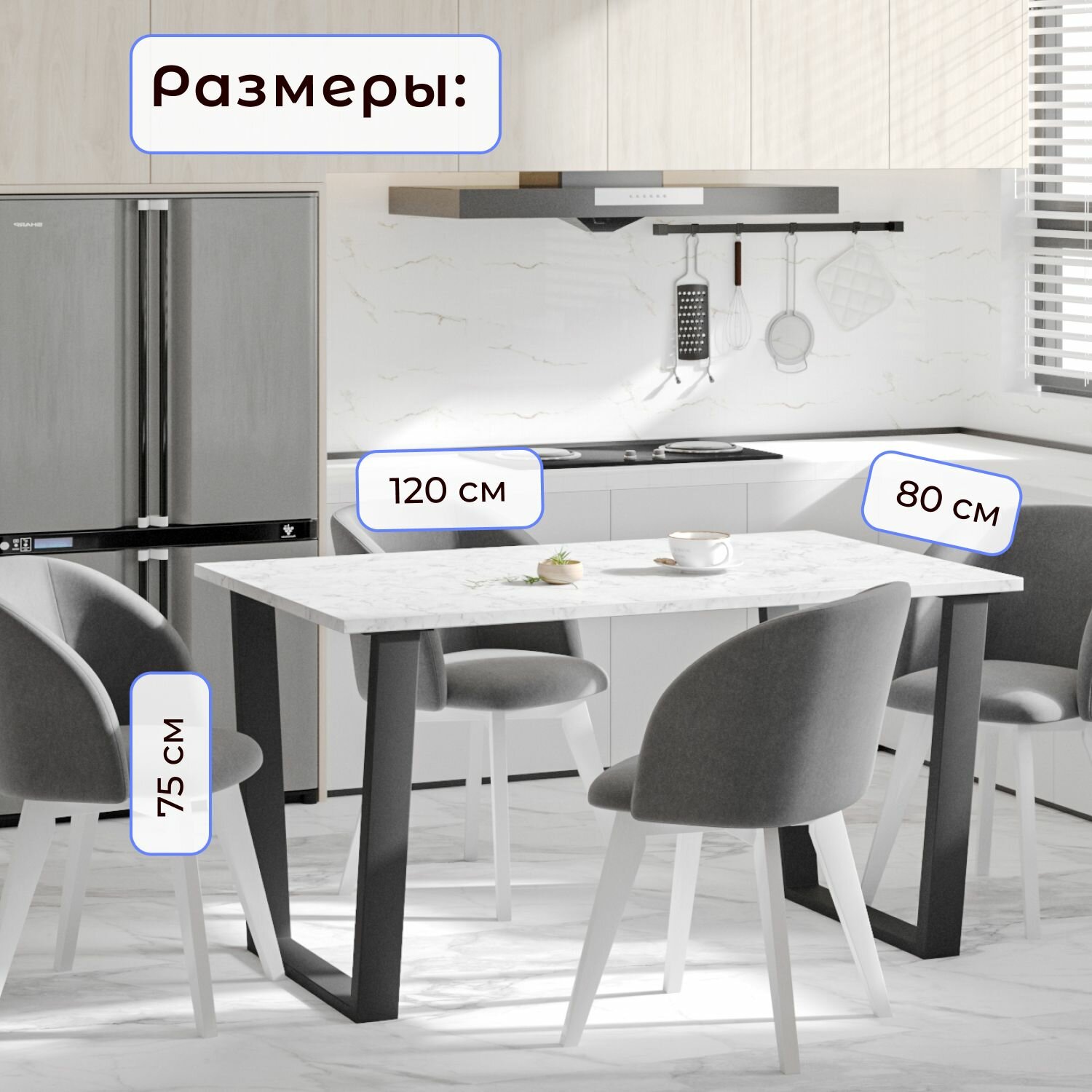 Стол кухонный обеденный атлант 11 Премиум: Мрамор белый нераскладной в стиле лофт