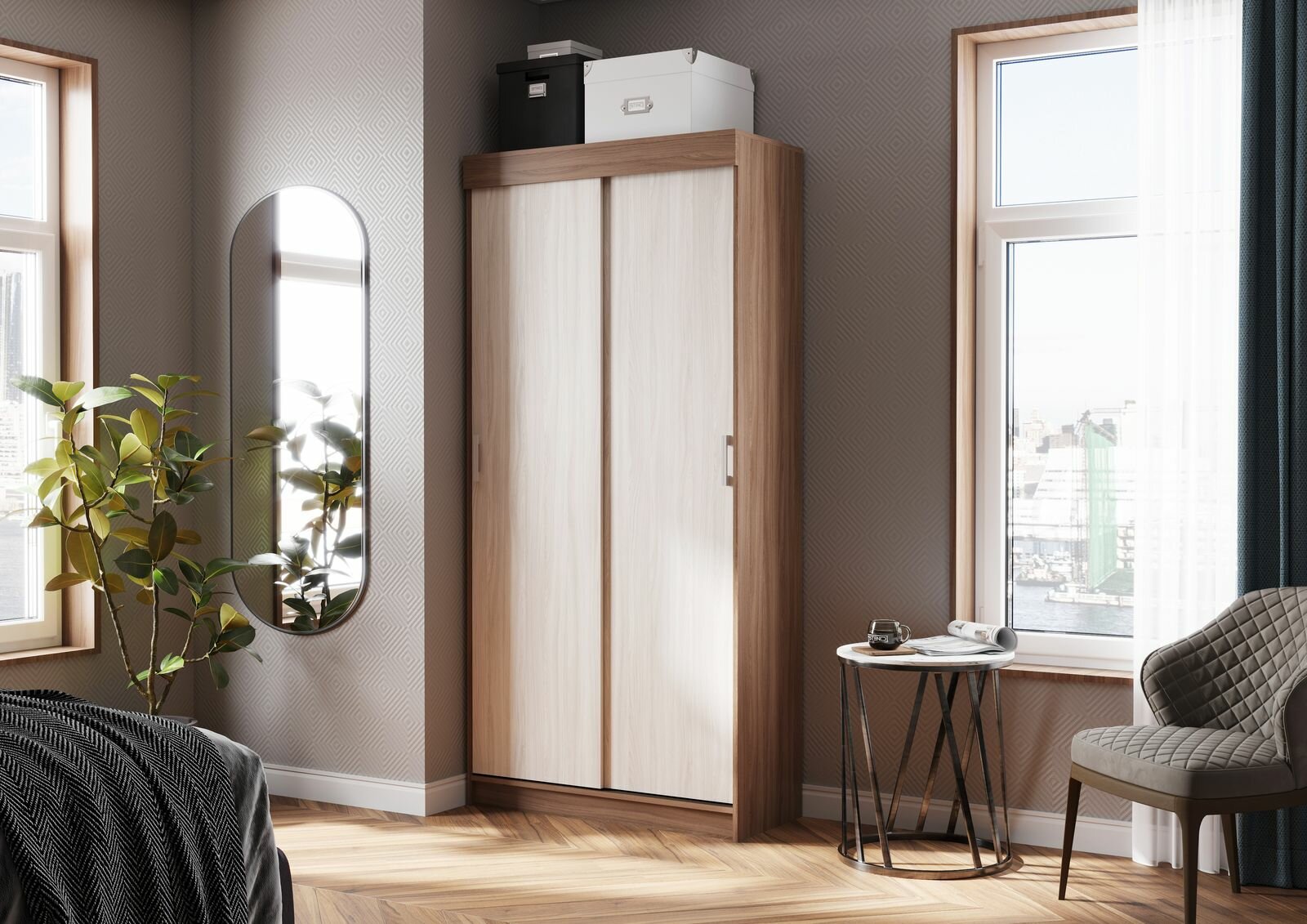 Купить Андрей-Эконом (евро) шкаф-купе (1000х2100х416) ясень шимо темный/ясень шимо светлый