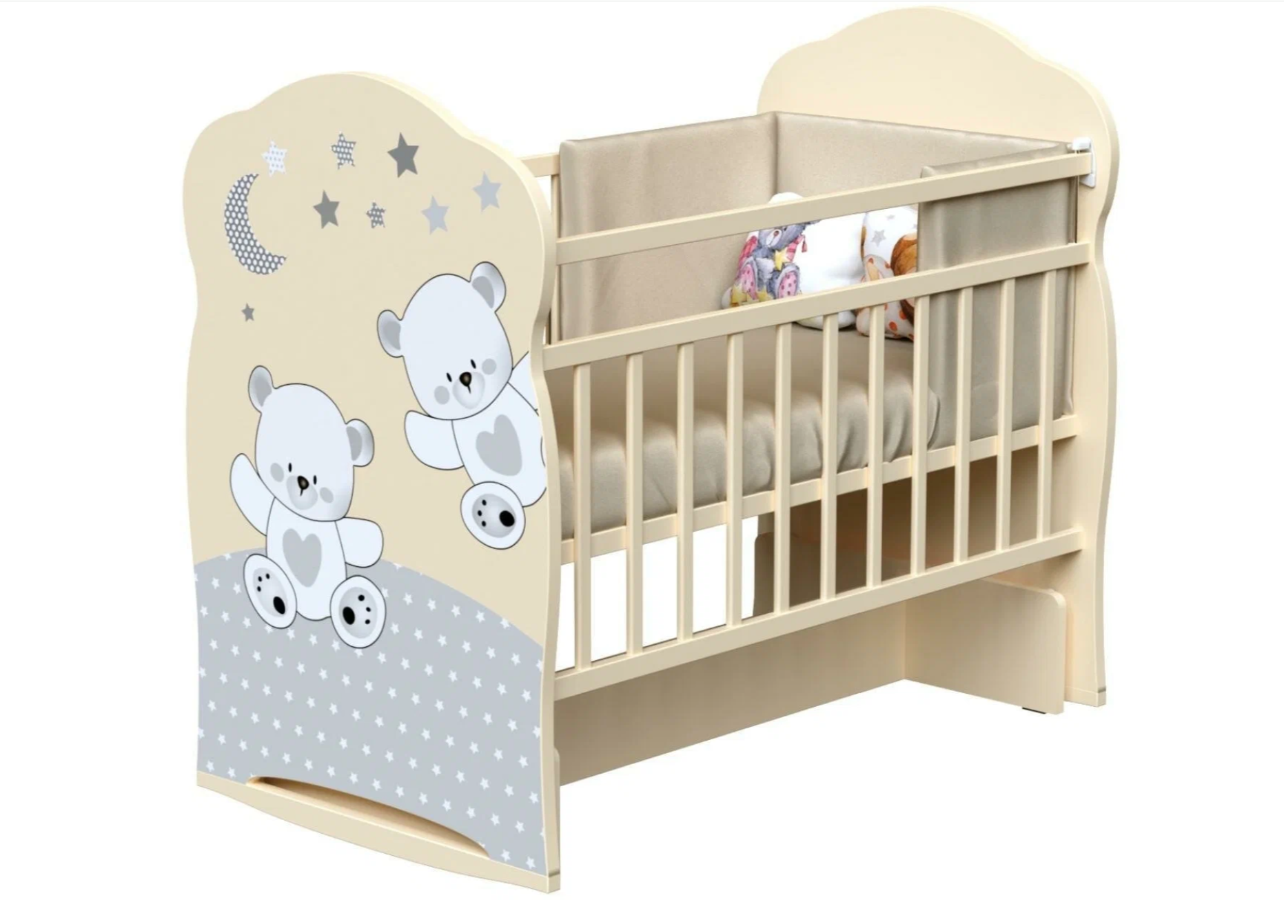 Купить Кроватка детская для новорожденных ВДК Funny Bears, колесо-качалка, массив березы, слоновая кость