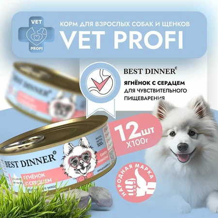 СохранитьВлажный корм Best Dinner Vet Profi Gastro Intestinal для собак любых пород Ягненок с сердцем (12шт х 100гр) интересное: