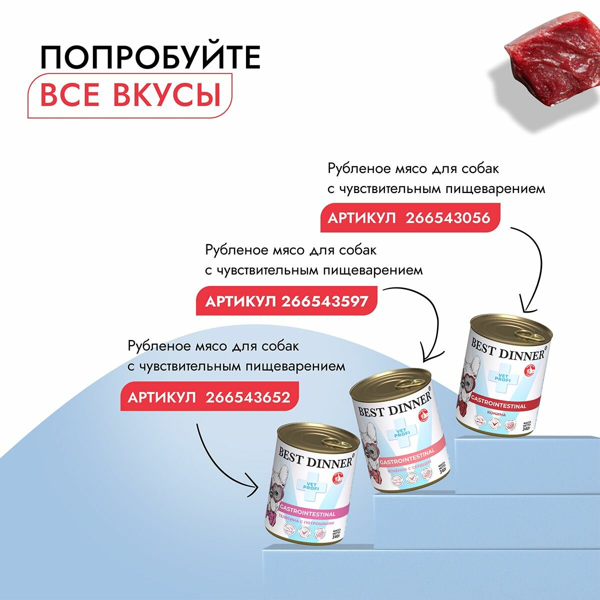 СохранитьВлажный корм Best Dinner Vet Profi Gastro Intestinal для собак любых пород Говядина с сердцем (6шт х 340гр) интересное: