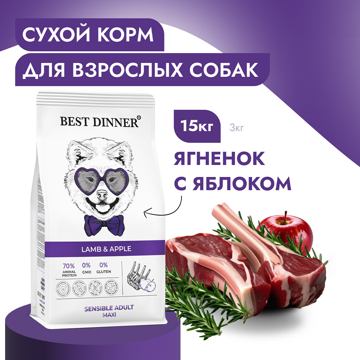 Купить Корм сухой для собак крупных и гигантских пород супер премиум класса с ягненком и яблоками при чувствительном пищеварении, 15 кг Best Dinner (Бест Диннер)