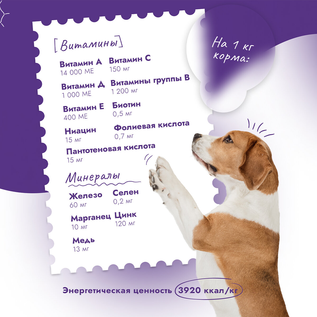 | Минусы: | Нельзя закрыть пакет после вскрытия, корм может выветриться и собака не станет его есть |