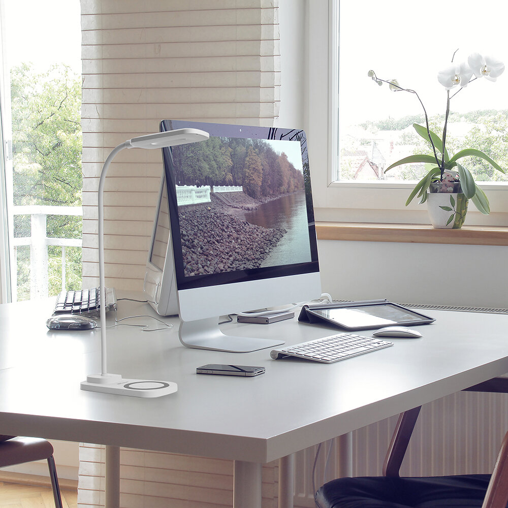 Настольная светодиодная лампа с зарядкой DE1729 22W, 3000-6000К, 100-240V, белый 41552