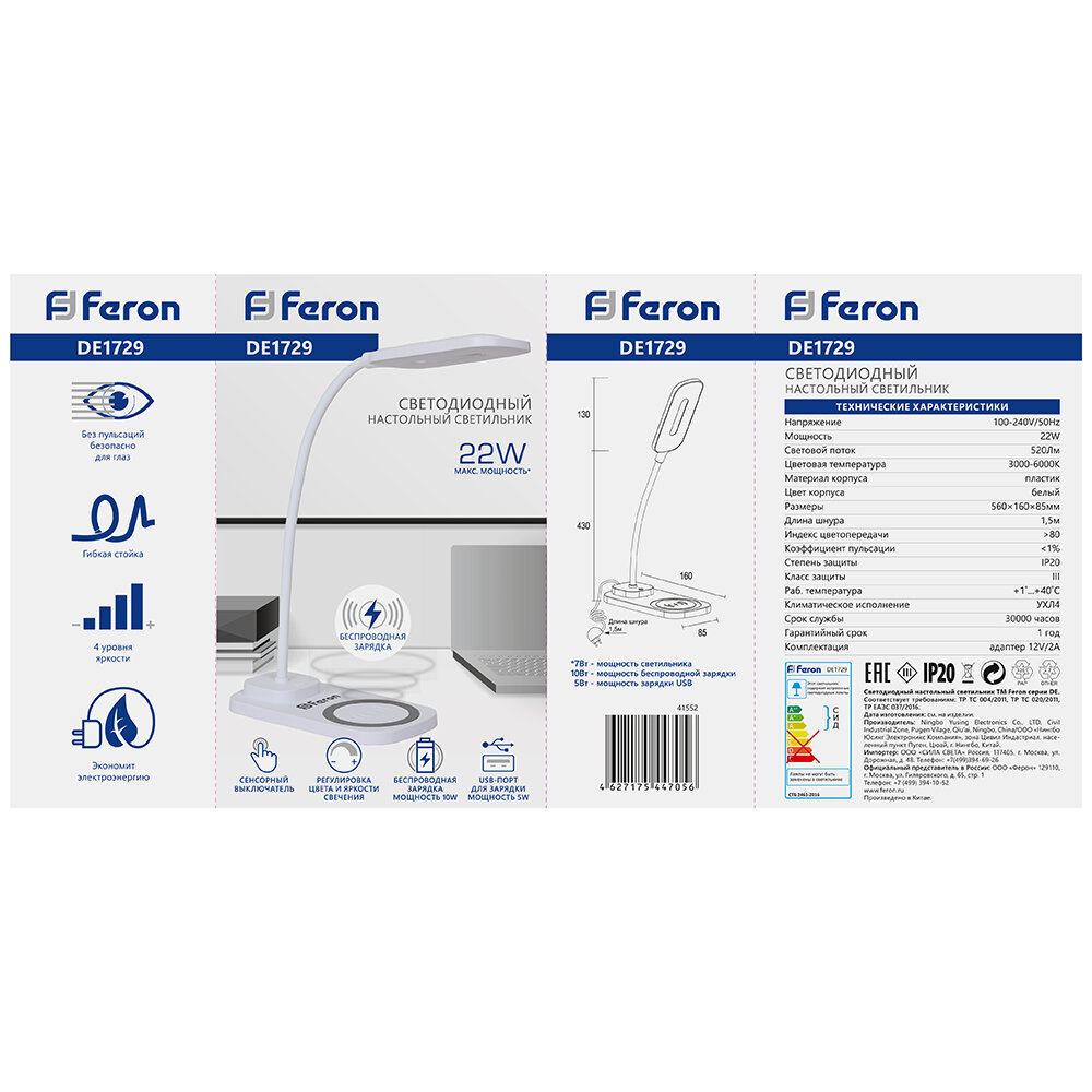 Ниже Вы можете прочитать отзывы на FERON Светильник настольный, диммир.,22W,3000-6000К, беспр.зар и USB порт , белый DE1729 41552, ознакомится с подробными характеристиками, посмотреть интересные обзоры и фотографии на FERON Светильник настольный, диммир.,22W,3000-6000К, беспр.зар и USB порт , белый DE1729 41552.