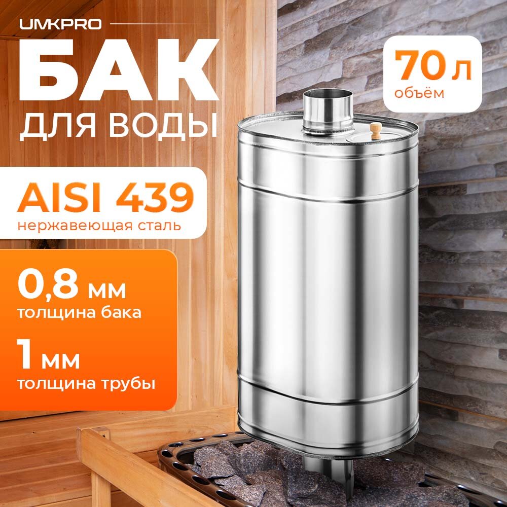 СохранитьБак для банной печи на трубе 70л из стали AISI 439/0,8мм, D 115 интересное: