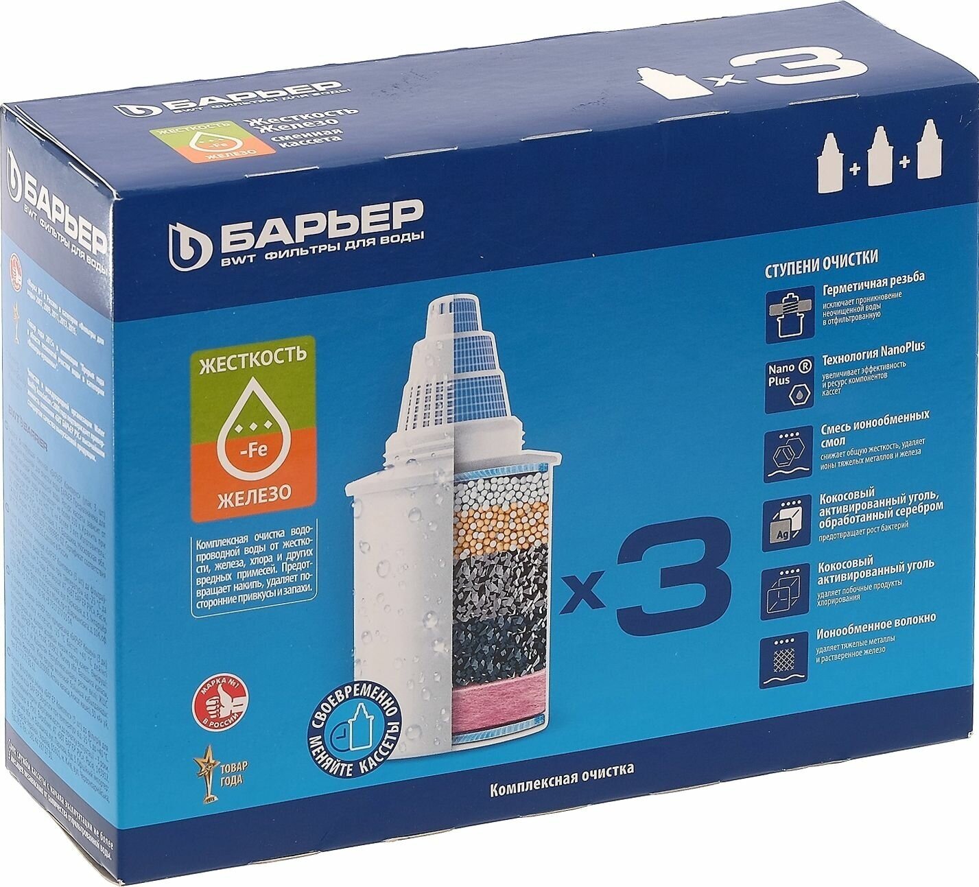 БАРЬЕР Жесткость Железо, защищает от накипи и железа, комплект кассет для фильтров-кувшинов, 3 шт.