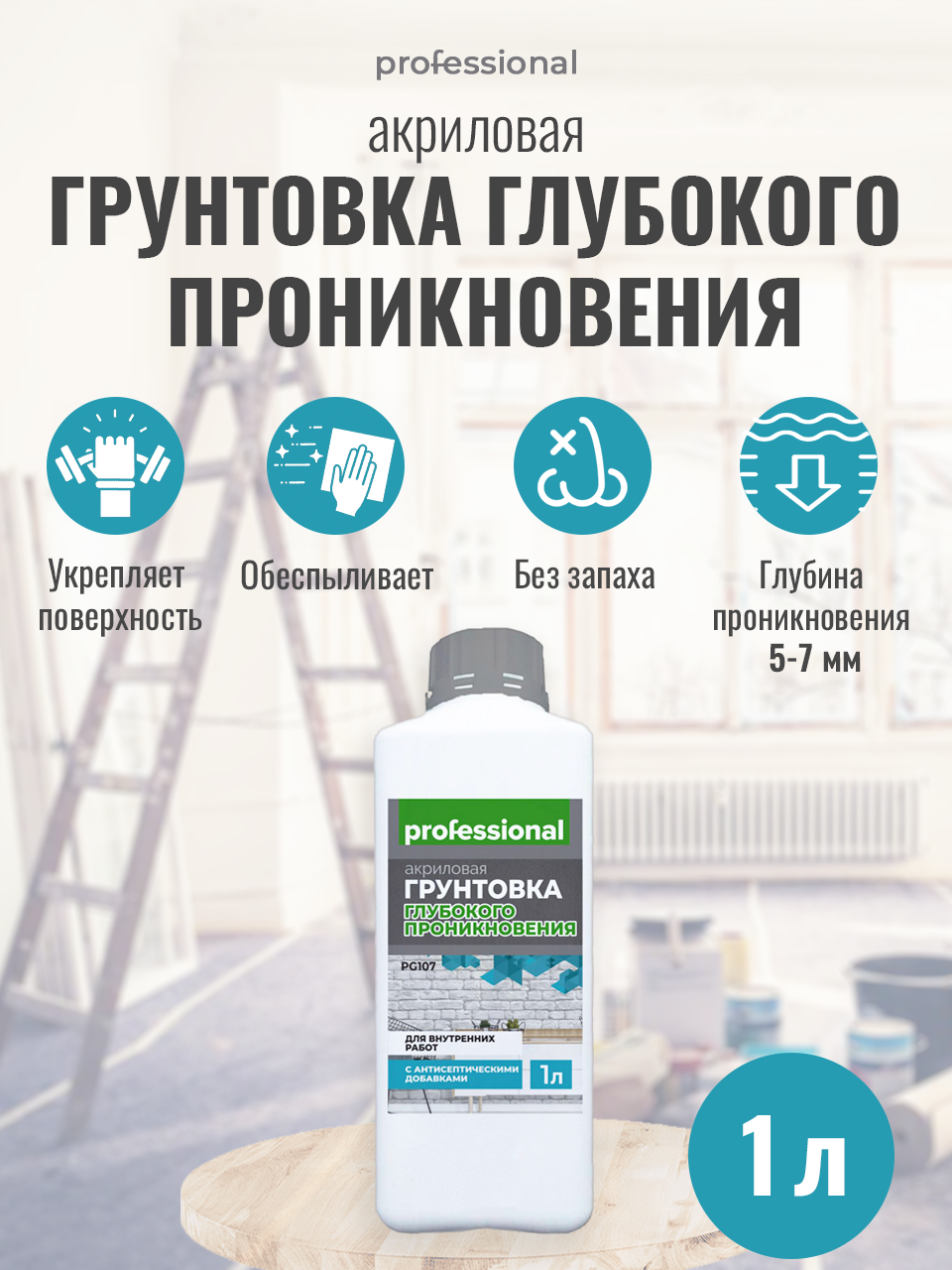 Грунтовка глубокого проникновения для внутренних работ с антисептиком PG107 (1л) ТМ "Professional"