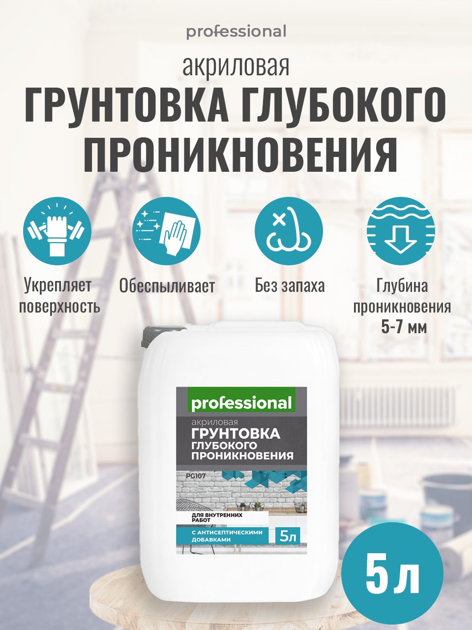 Грунтовка глубокого проникновения для внутренних работ с антисептиком PG107 (1л) ТМ "Professional"