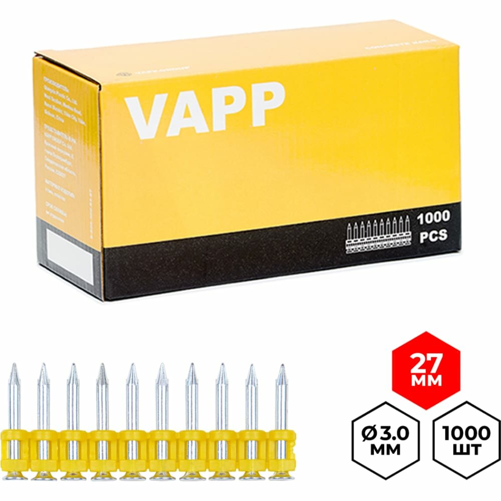 Гвозди по бетону VAPP 3*27 мм усиленные для монтажного пистолета