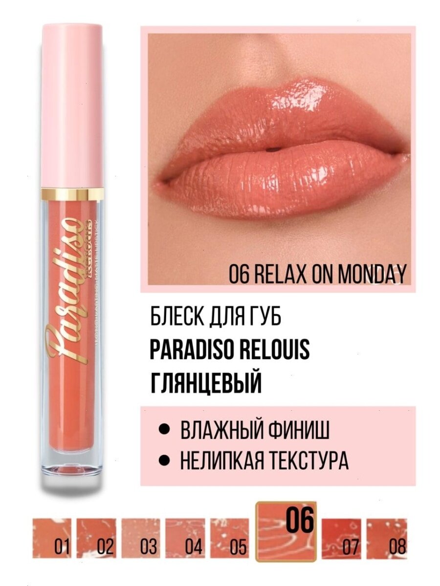 Блеск для губ Paradiso с влажным финишем т:06 Relax On Monday, Relouis, 3гр