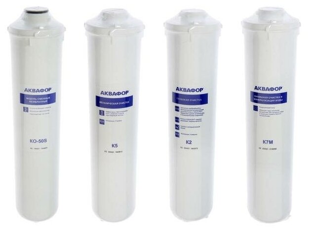 Комплект картриджей сменных для воды Аквафор К5/К2/КО-50S/К7М, набор 4 шт