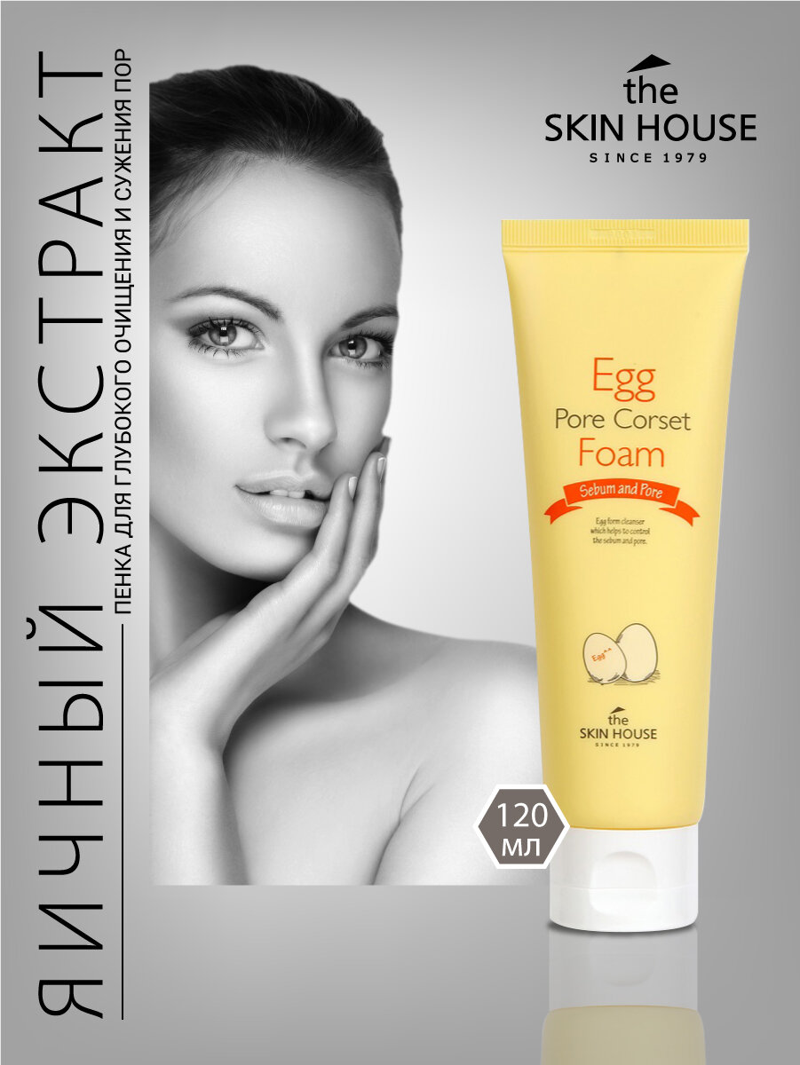 The Skin House Пенка для глубокого очищения и сужения пор, для умывания, для снятия остатков макияжа, для ухода за кожей лица, шеи и зоны декольте с яичным экстрактом, корейская косметика. 120мл