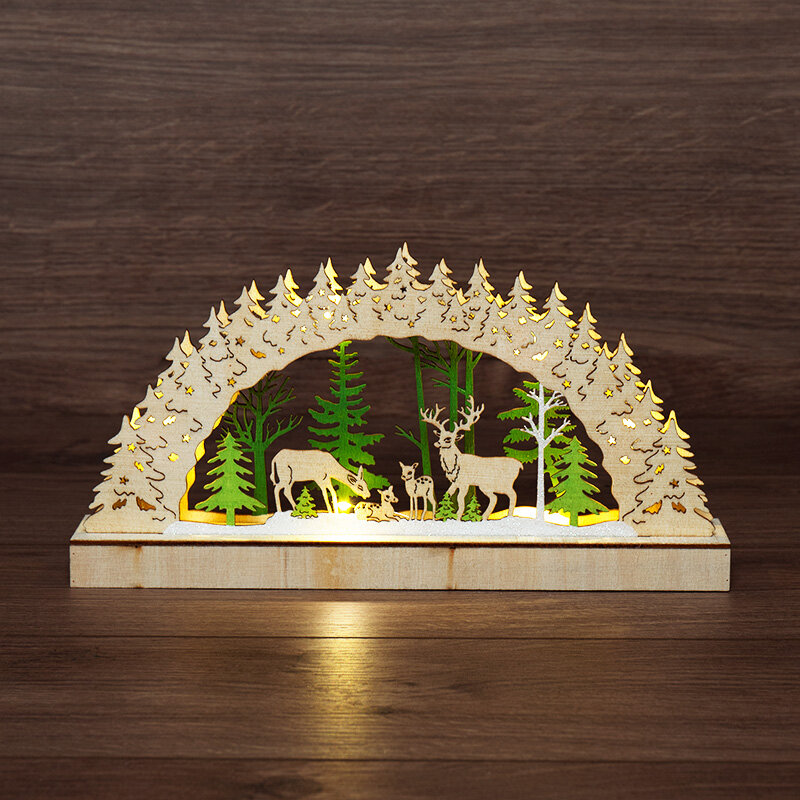 Деревянная фигурка с подсветкой «Семейство оленей» 30х5х15,7 см