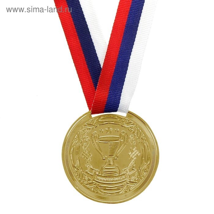 Купить Медаль призовая 013 диам 5 см. 1 место, триколор. Цвет зол. С лентой