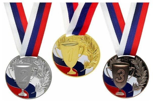 Медаль призовая 013 диам 5 см. 1 место, триколор. Цвет зол. С лентой интересное: