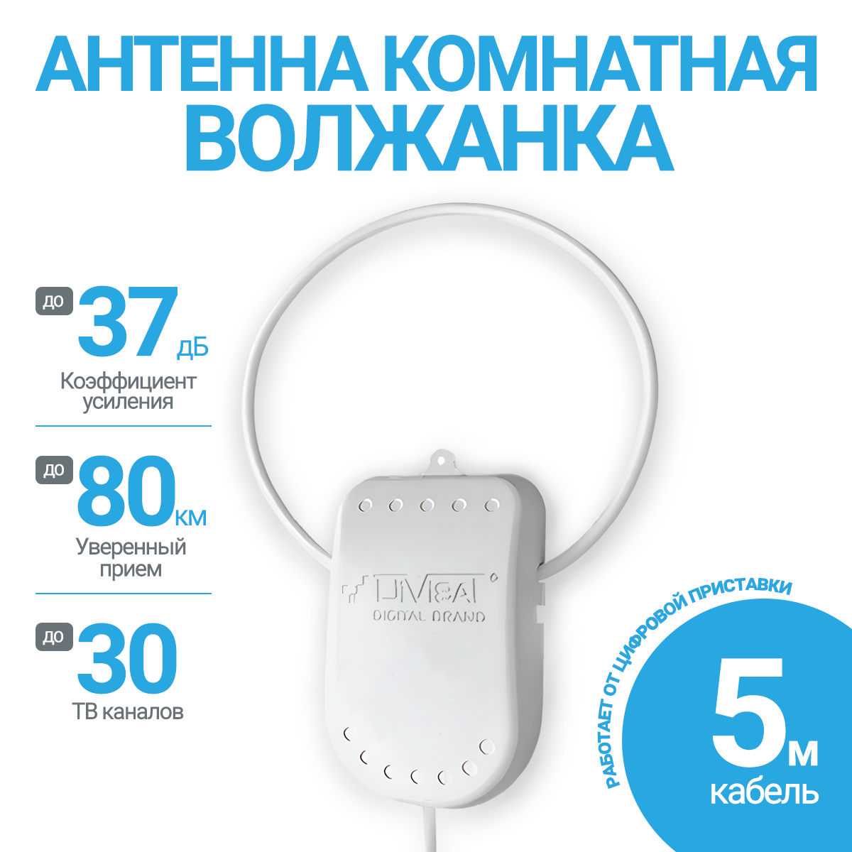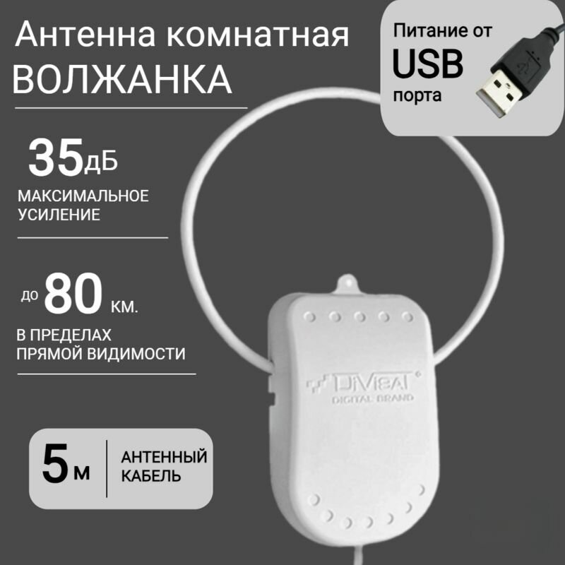 Антенна комнатная, Активная, для Цифрового ТВ, Волжанка, USB, 5м, с присоской интересное: