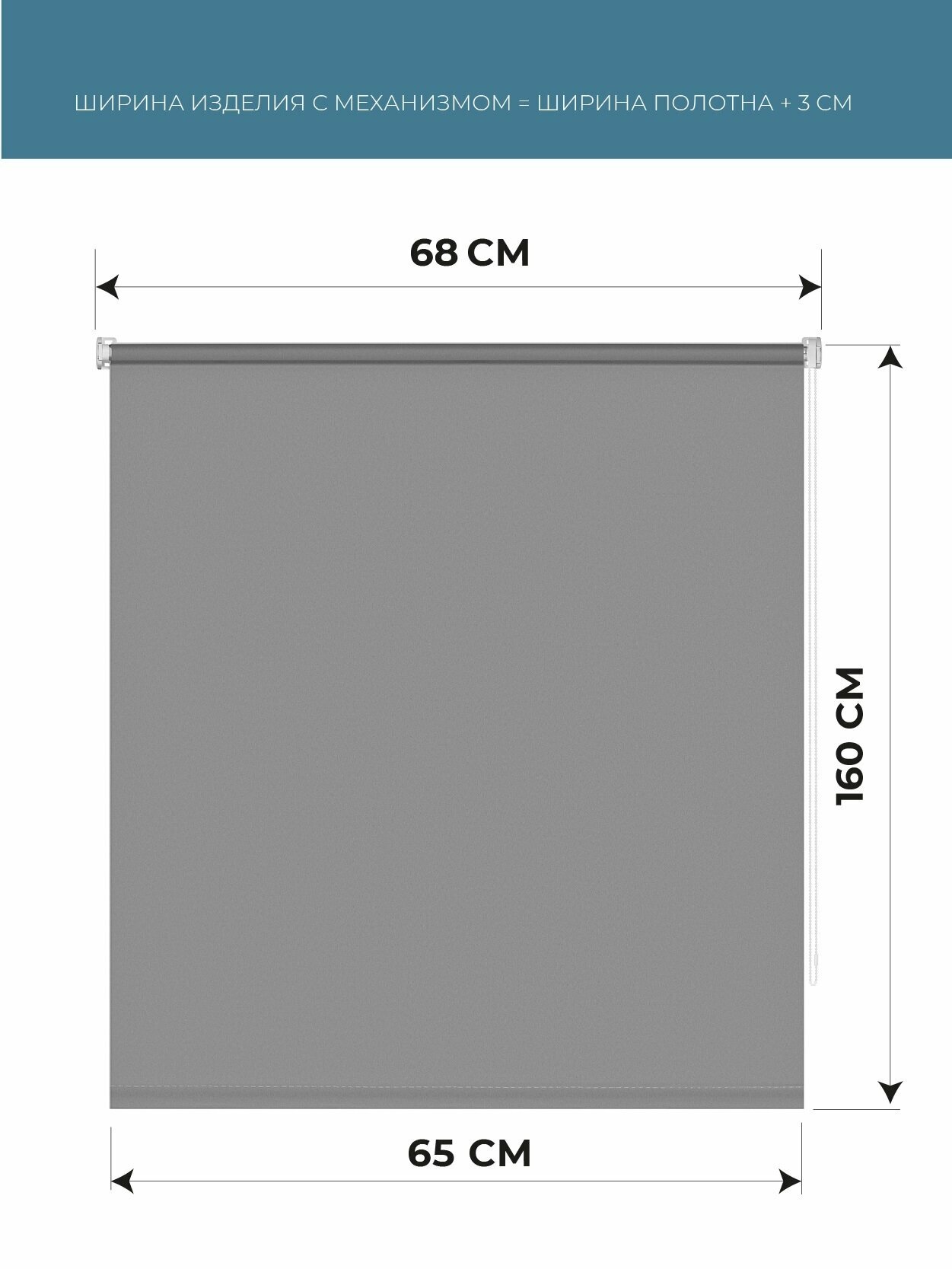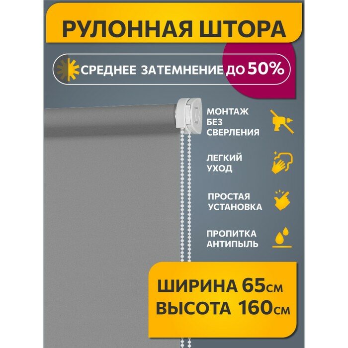 Купить Рулонные шторы однотонные Плайн Серый DECOFEST 65 см на 160 см, жалюзи на окна
