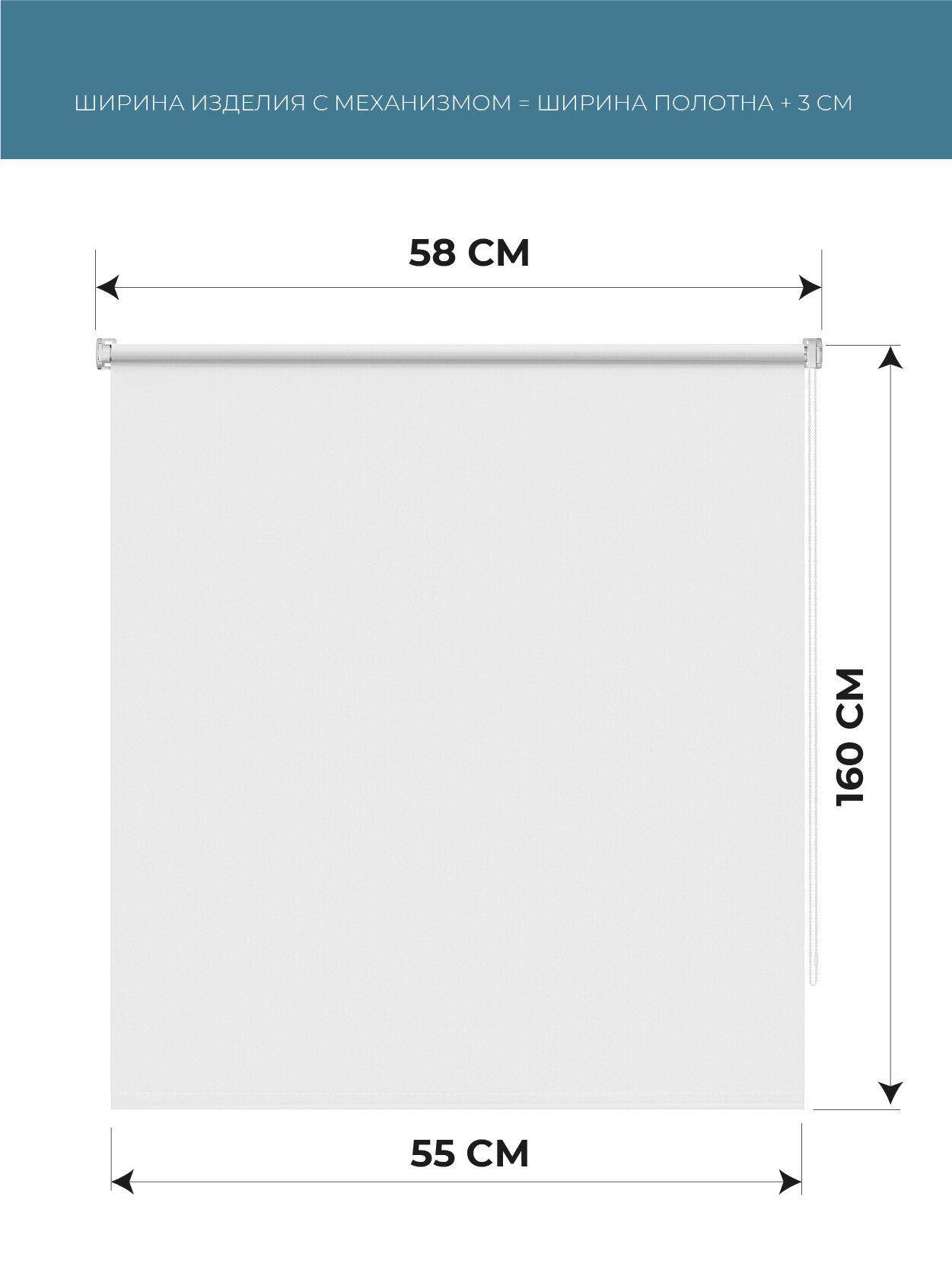 Купить Рулонные шторы однотонные Плайн Белый DECOFEST 55 см на 160 см, жалюзи на окна