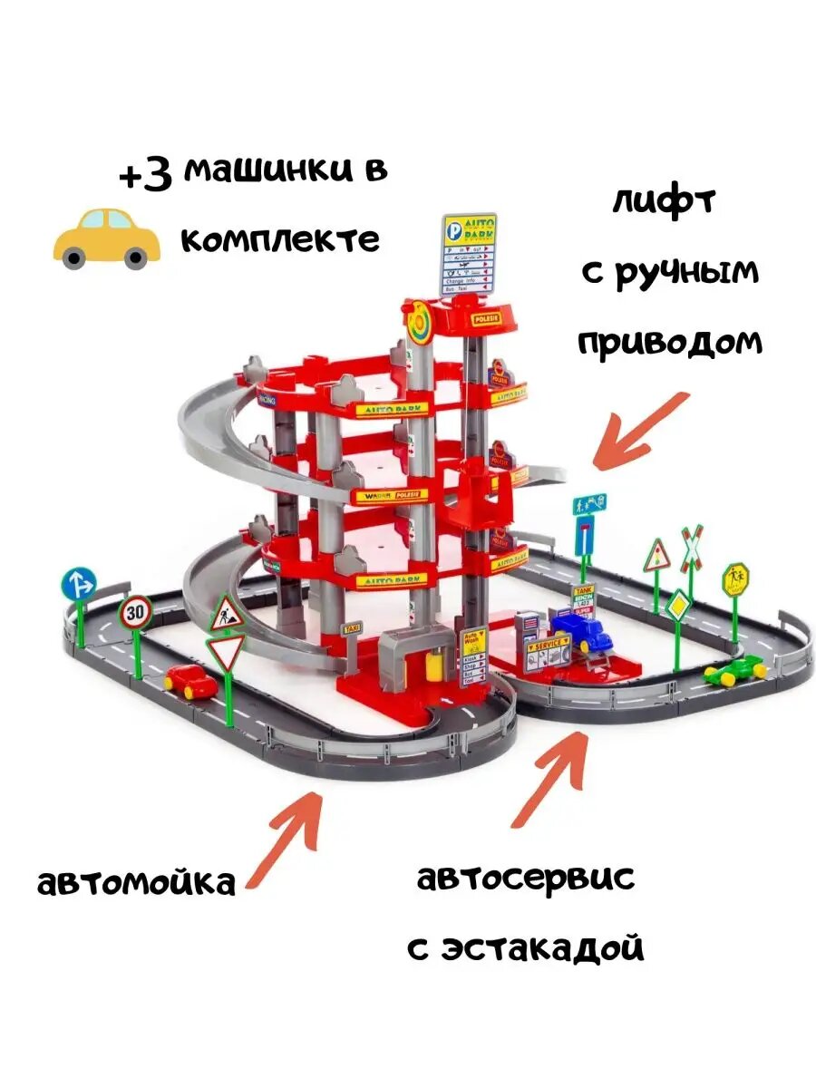 СохранитьПаркинг Полесье 4-уровневый с дорогой и автомобилями, красный (в коробке) (44723) интересное: